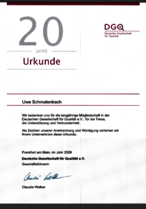 DGQ verleiht Urkunde für 20 Jahre Mitgliedschaft